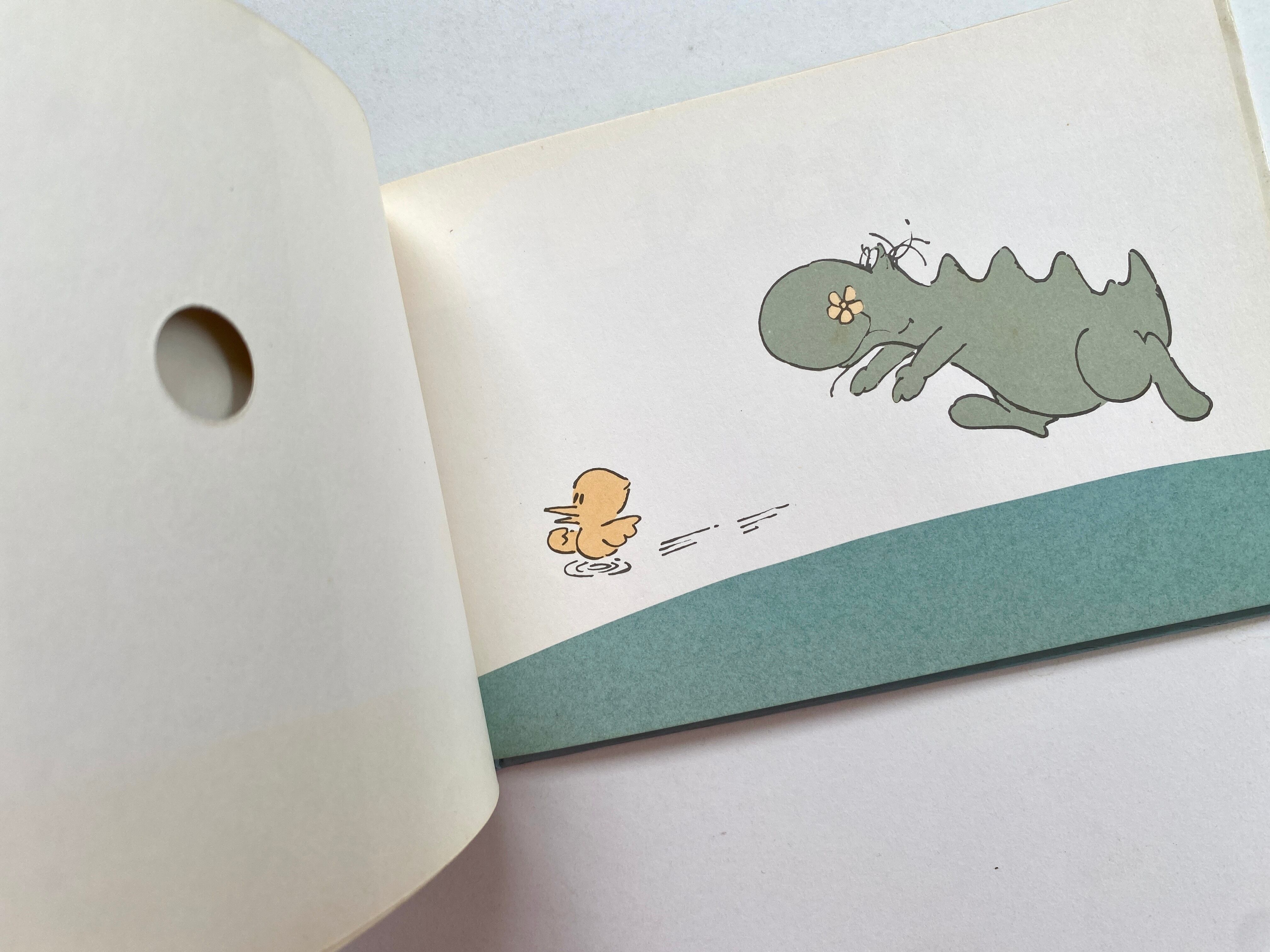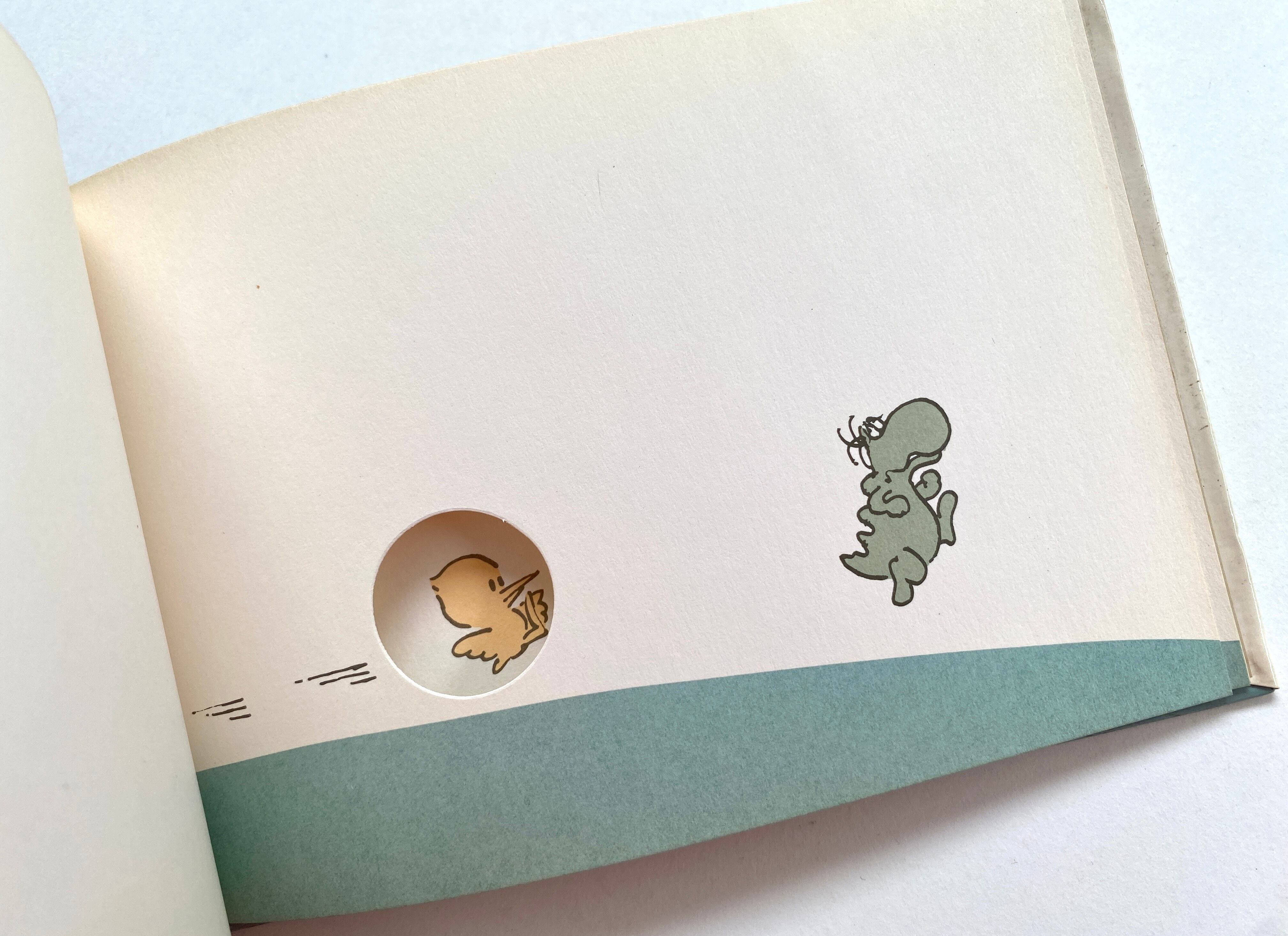 小さな丸い窓の空いた、手のひらサイズの絵本です。