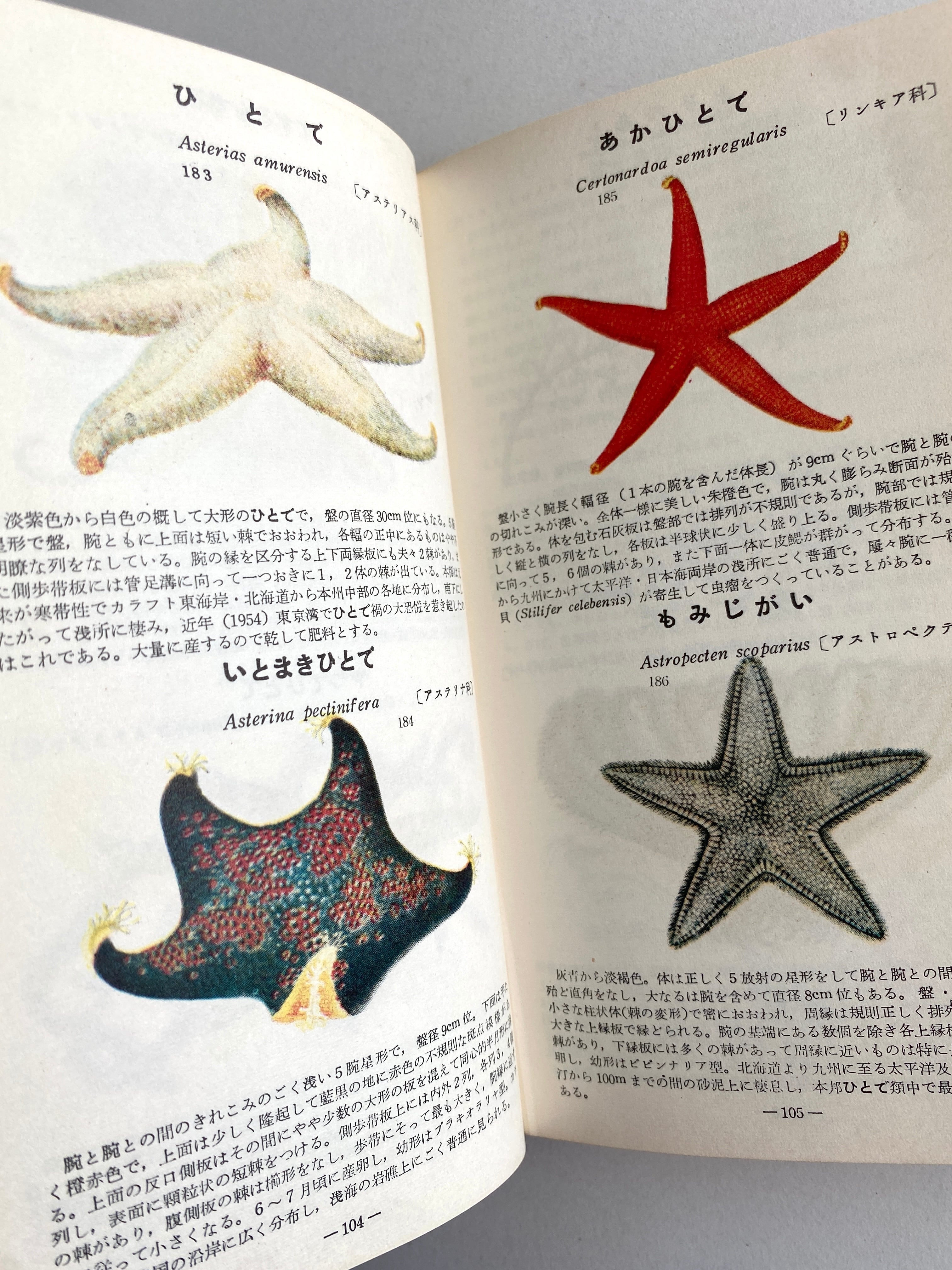 鯨類、魚類・円口類、原索動物類、棘皮動物類、節足動物類、軟体動物類、擬軟体動物と7章に分かれ、海や川や水辺に生息する動物が掲載されています。