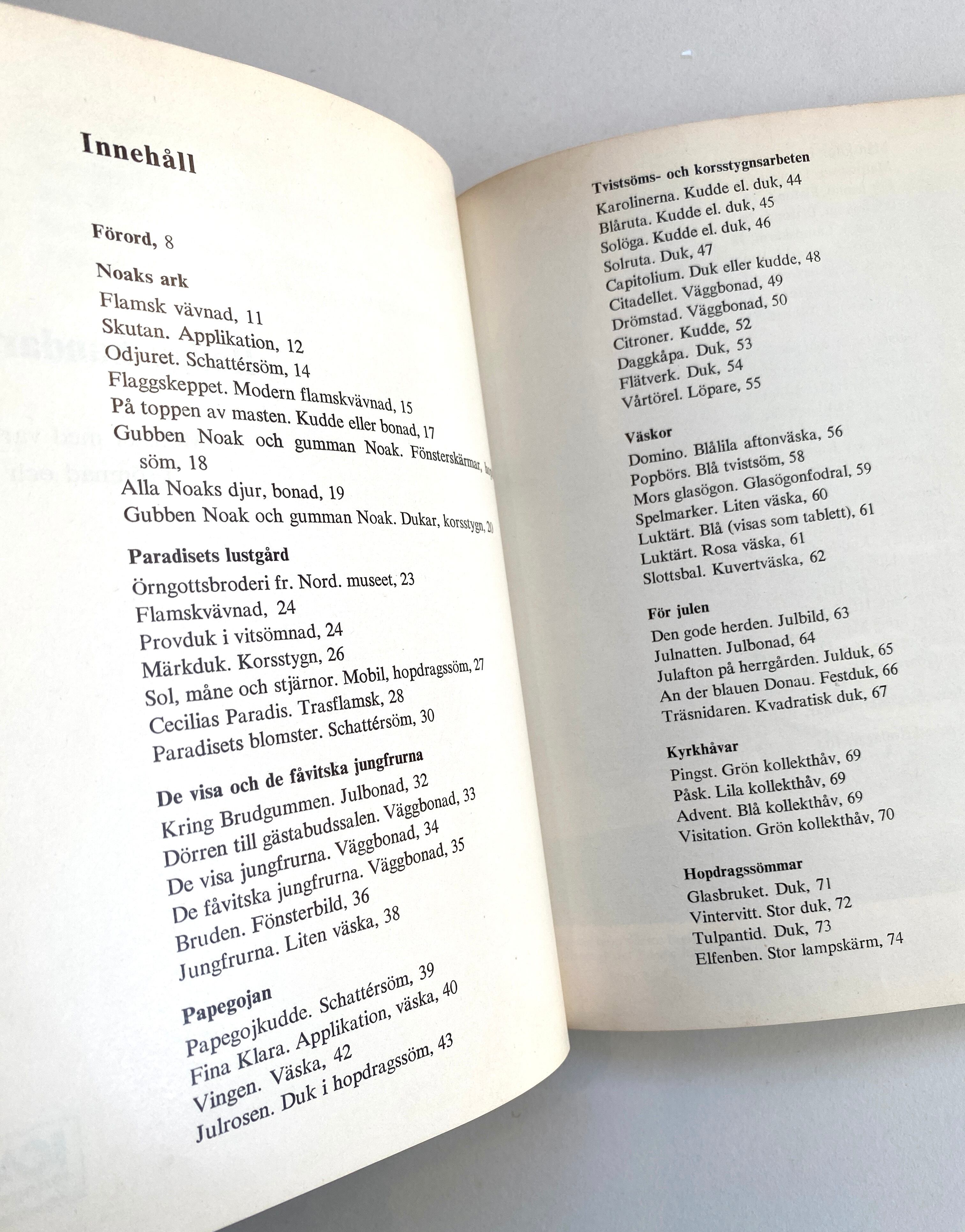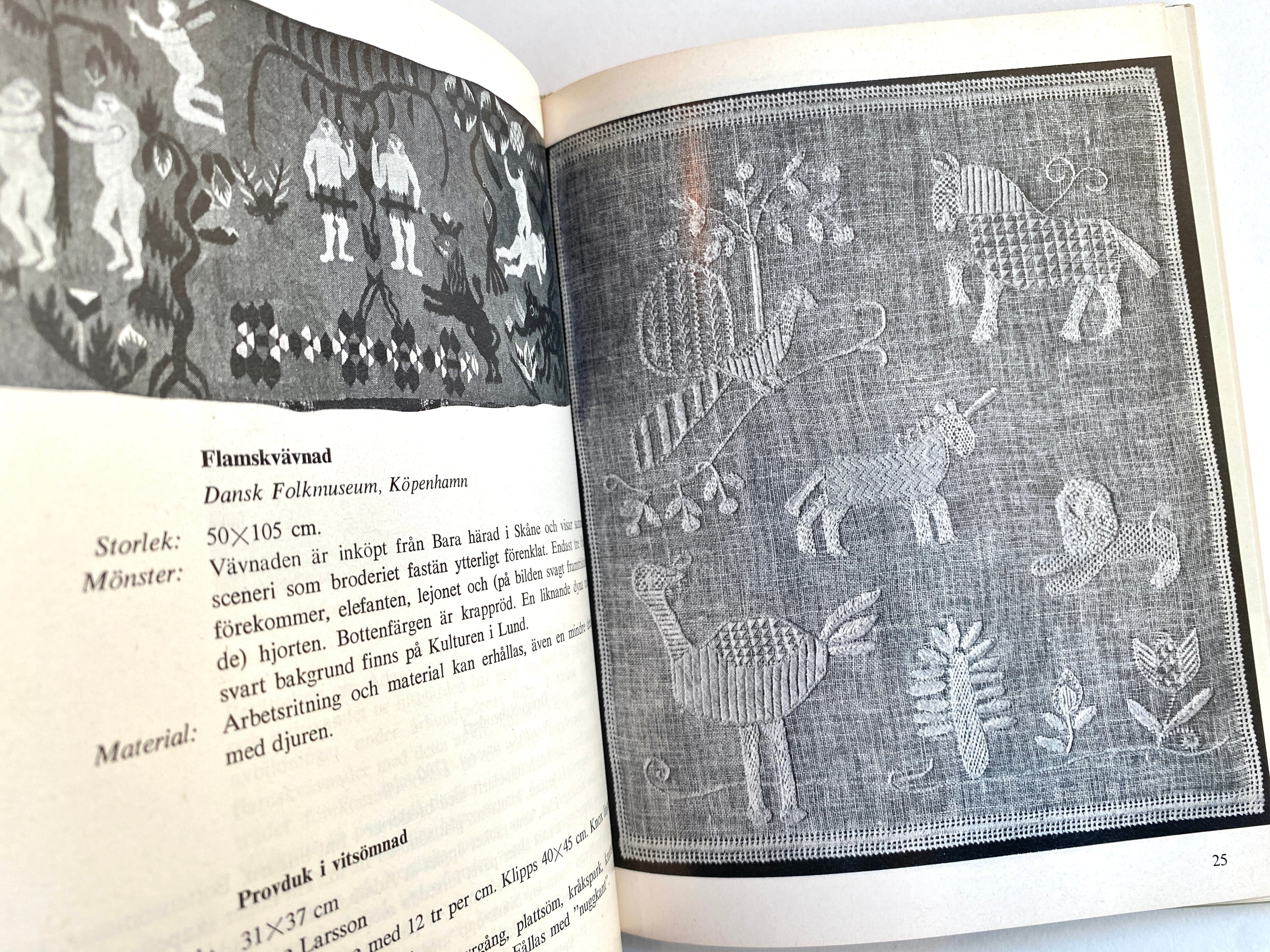 直訳すると『楽しい針仕事』というタイトルの、スウェーデンの伝統的な織物や刺しゅう、クロスステッチなどさまざまな作品が収められています。